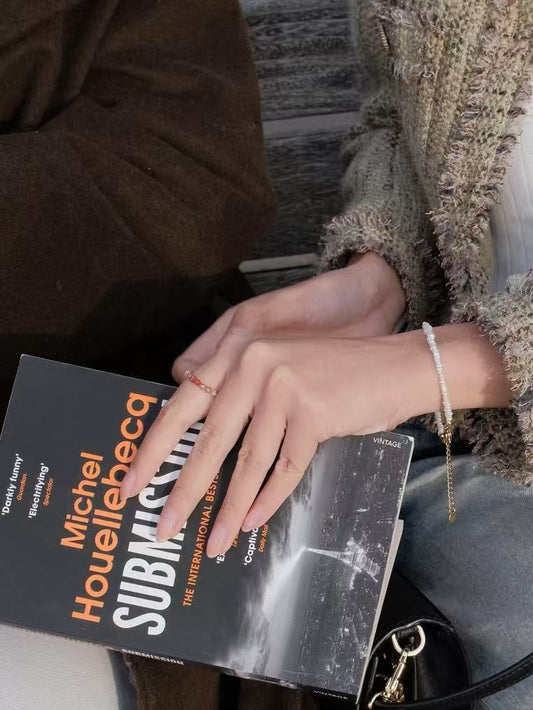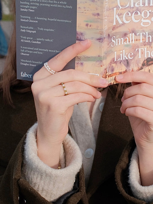 Curiosity - Oval Freshwater Pearl Stretch Ring, Dainty Minimalist Jewelry
