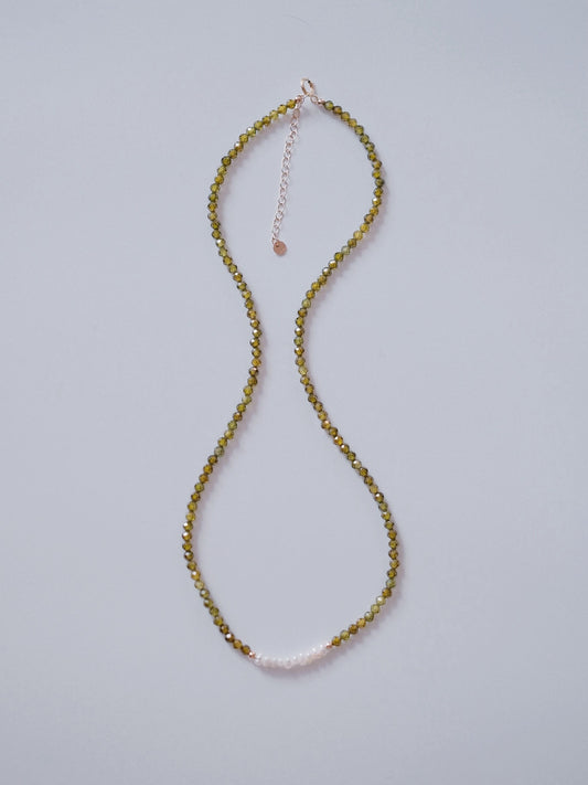 Curiosity - Olive Green Zirconia and Fresh Water Pearl Choker Necklace, Minimalist Jewelry