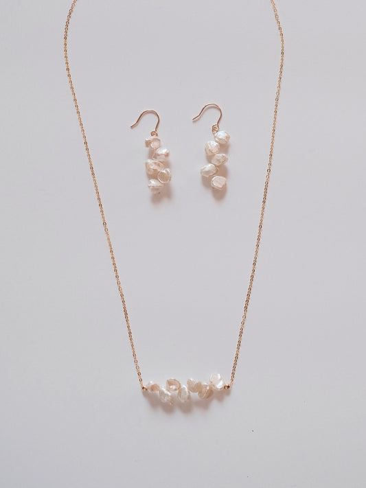 Curiosity - Flower Pedals, Irregular Freshwater Pearl Cluster Necklace, Dainty Minimalist Jewelry