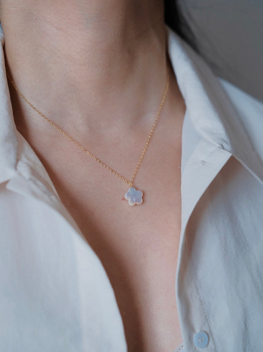 Curiosity - Iridescent Flower Pearl Pendant Necklace, Dainty Minimalist, Jewelry