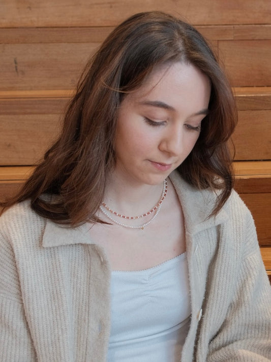 Make a statement with our collection of necklaces that blend timeless elegance with modern style. Whether you prefer delicate and classic patterns or bold colorful statement pieces, with a variety of lengths and styles, you can perfect every outfit and showcase your unique personality in the spotlight. Our necklaces are handmade with natural freshwater pearl and gold plating by skilled ourselves, ensuring each piece is of the highest quality and brings joy to your daily wear.